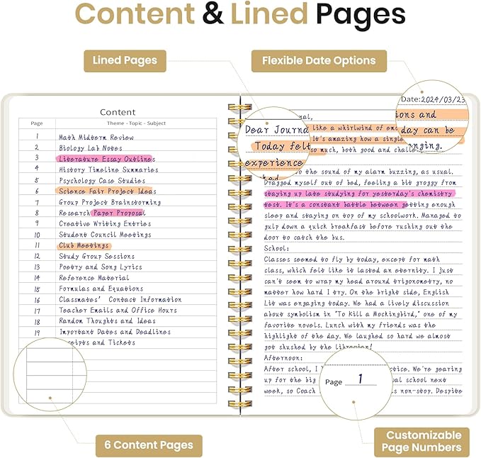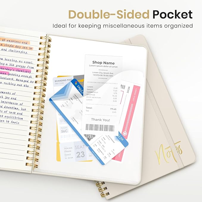 - Streamlined and Practical Design: Featuring 140 lined pages and a 6-page blank table of contents, our notebook provides generous room for note-taking and effortless referencing. An inner pocket safeguards miscellaneous items, while an elastic closure band ensures the notebook remains securely closed when not in use.