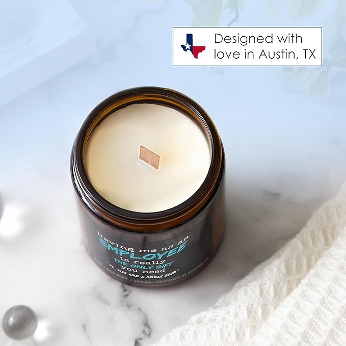 - 💠 Funny Gift for Boss: These wood wick candles are a fun way of sending love & appreciation to your boss! It has a fun message on the label that says "Having me as an employee is really the only gift you need. JK, you are a great boss!". Best boss gifts for men funny fathers day gifts for bosses day, funny gifts for boss man, boss gag gifts for my boss male, Christmas Gift, & funny boss gifts for men office!