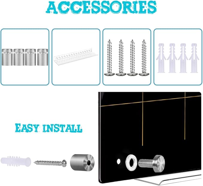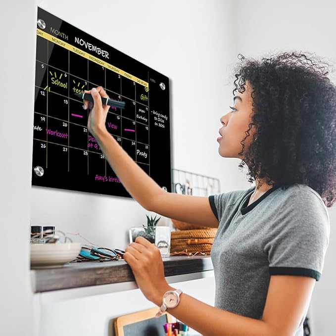 - Glass Calendar Board: 18" x 24" black glass dry erase calendar whiteboard. (Magnets and markers NOT included)