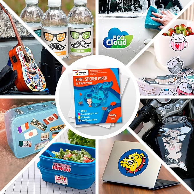 - Endless possibilities for your creativity - Vinyl Sticker Paper will stick on all flat surfaces, plastic, glass, wood, and metal. Great for DIY projects, Home Decor, Scrapbooking labels, including wall murals, decals for cars, printable vinyl stickers for laptops and phone labels, bumper stickers (not suitable for t-shirts)