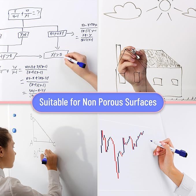- Designed with low-odor blue ink, these markers provide smooth, bold lines that dry quickly and erase cleanly without leaving stains or ghosting behind.