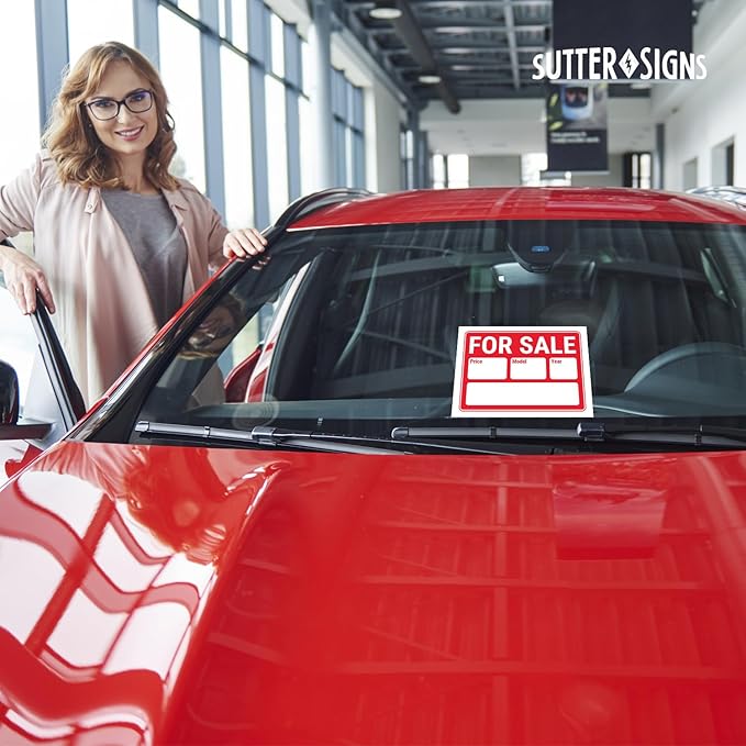For Sale Signs 12x9, Plastic Signs for Used Car, Trailer, Vehicle for Sale with Year and Model, Waterproof Plastic (Pack of 4)