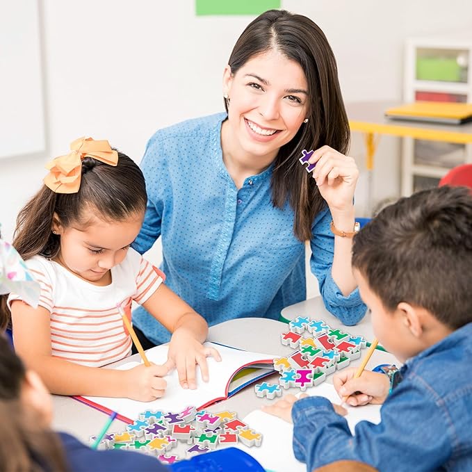 - Puzzle Pieces Mini Erasers: The package comes with 60pcs puzzle erasers in 6 styles (Each style 10pcs). Bright colors and cute puzzle shapes make a fun classroom prize for students to encourage and motivate them to learn.