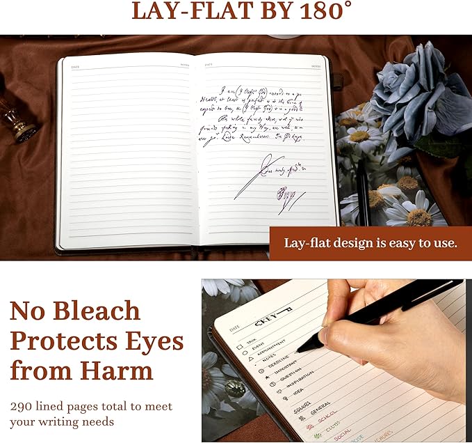 - PREMIUM LINED PAPER - Journals for writing has 145 sheets/290 pages of lined paper; The rounded corners of the paper can protect the diary from curving. It can be 180° lay-flat,making it a pleasure to write in. Used 100gsm bleed proof paper, to ensure a quality writing experience without ghosting and ink-bleeding.
