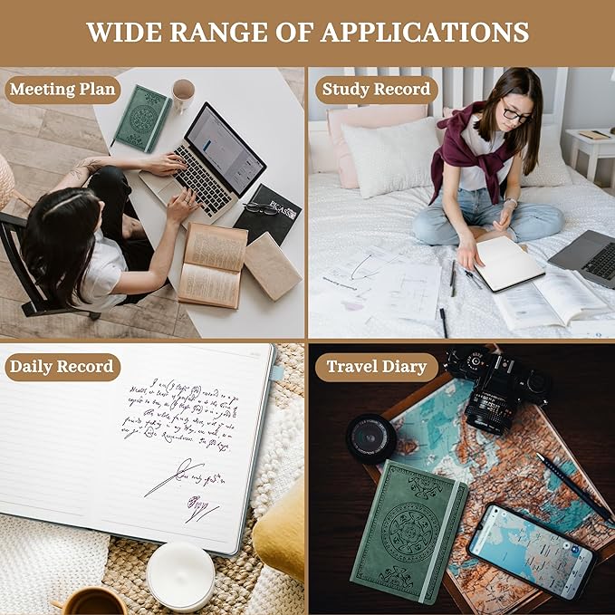 - UPGRADED DESIGN MORE INTIMATE - We have made new upgrades and optimizations to our products!Now every vintage hardcover diary comes with a pen. The journal notebook now is packed with features like pen holder, elastic closure, ribbon bookmark and inner pocket. These thoughtful designs help you better manage and save your ideas and record inspiration anywhere!