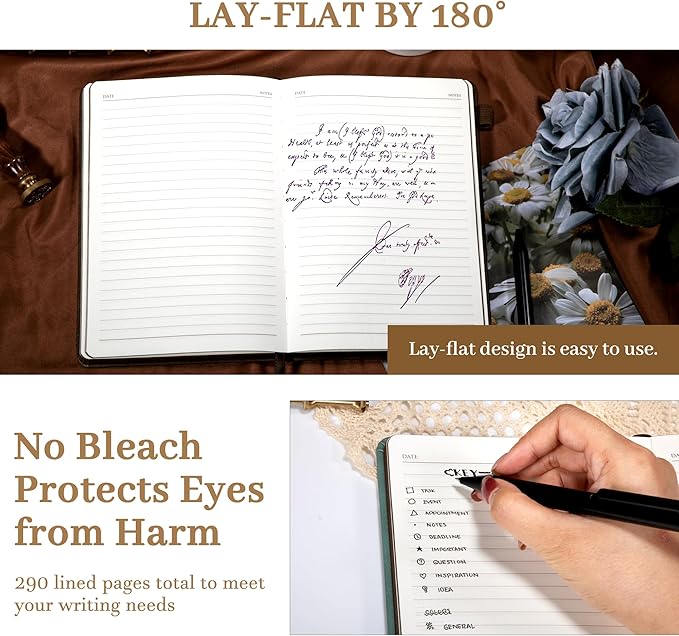 - PREMIUM LINED PAPER - Journals for writing has 145 sheets/290 pages of lined paper; The rounded corners of the paper can protect the diary from curving. It can be 180° lay-flat,making it a pleasure to write in. Used 100gsm bleed proof paper, to ensure a quality writing experience without ghosting and ink-bleeding.