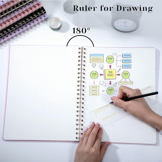 - Upgrade Practical Functions -- We added a pen insert on the cover of the graph notebook to prevent pens from falling out. Removable ruler can help you measure and chart. Elastic band keep the cover from opening, saving space when you put it in your bag. Internal pockets store small cards and important note-taking notes.