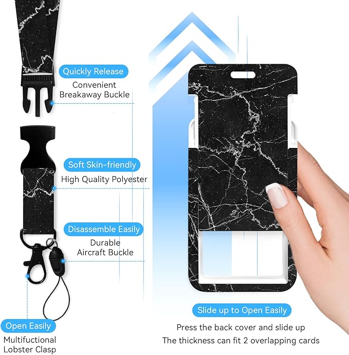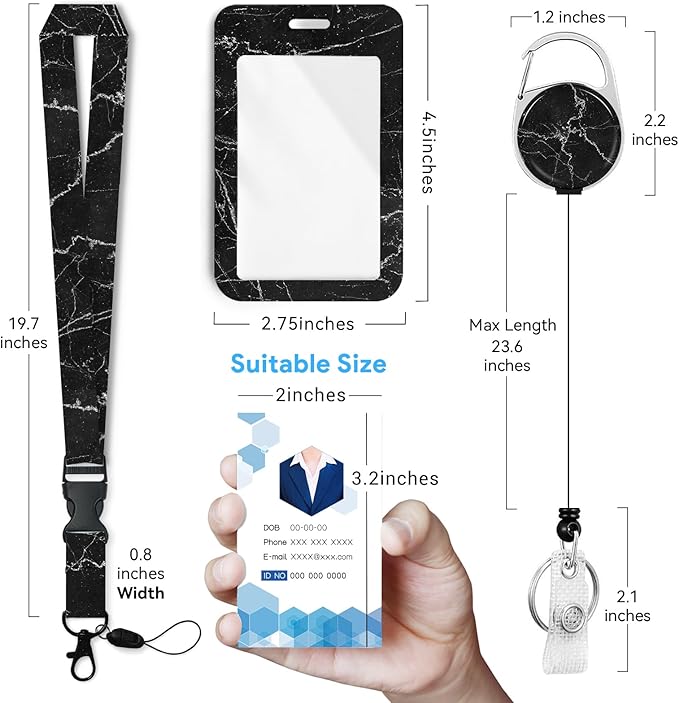 Black Marble Badge Holder with Retractable Reel and Breakaway Lanyard,Badge Clips Retractable Heavy Duty Badge Reel,Keychain,ID Holder with Breakaway Lanyard for School Nurse Office Teen…