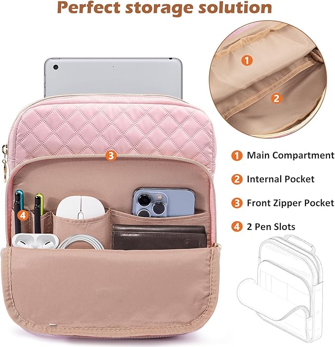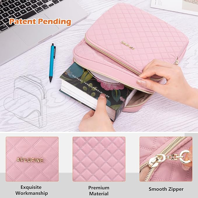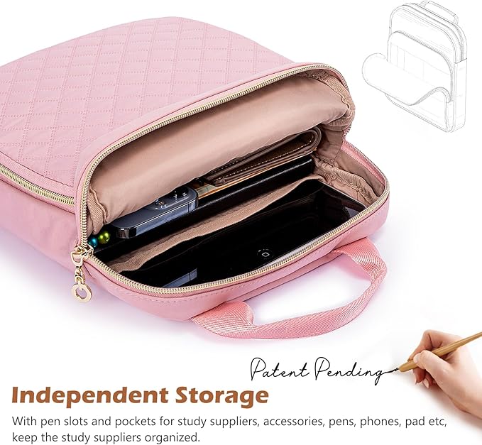 • MULTI-PURPOSE - The front pocket has a zipper closure. With pen slots and pockets for study suppliers, notebooks, accessories, pens, phones, etc, keep the study suppliers organized. Includes a carry handle wrapped with tweed fabric. Easy carry your book everywhere you go.
