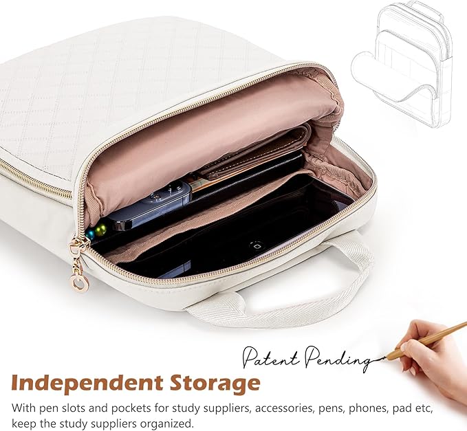 - MULTI-PURPOSE - The front pocket has a zipper closure. With pen slots and pockets for study suppliers, notebooks, accessories, pens, phones, etc, keep the study suppliers organized. Includes a carry handle wrapped with tweed fabric. Easy carry your book everywhere you go.