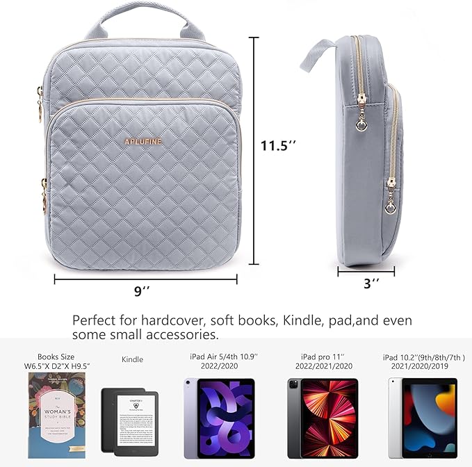 - Spacious Main Compartment - The size of the book pouch is 9 1/2"X11 1/2" which is roomy for hardcover, soft books, Kindle, and iPad.For your reference, it is large enough for a hardcover size of W6.5" X D2" X H9" Bible, and it still has room for a notebook journal.