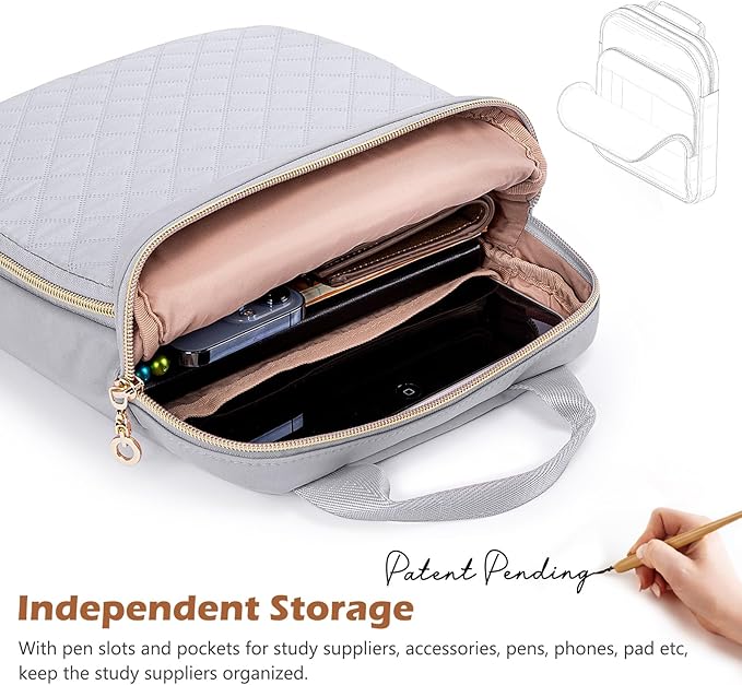 - MULTI-PURPOSE - The front pocket has a zipper closure. With pen slots and pockets for study suppliers, notebooks, accessories, pens, phones, etc, keep the study suppliers organized. Includes a carry handle wrapped with tweed fabric. Easy carry your book everywhere you go.