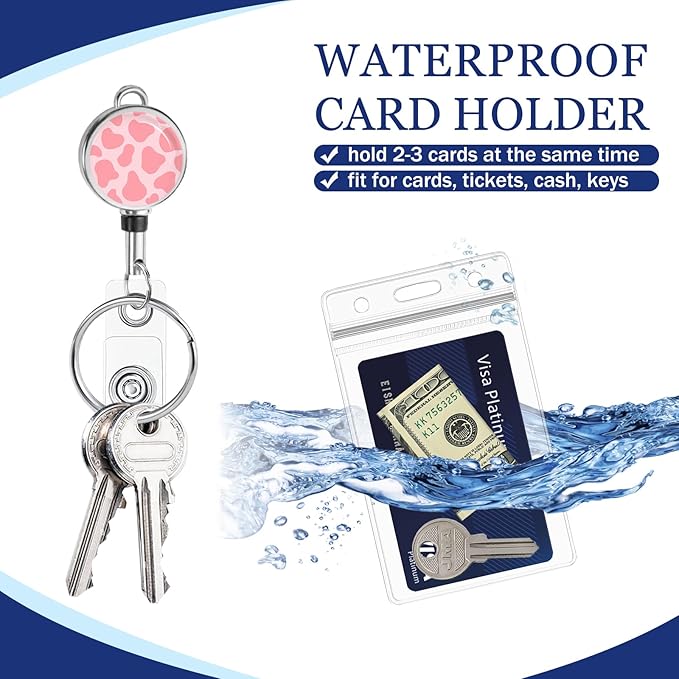 - Retractable Badge Reel: This lanyard with retractable badge reel can extend up to 15.75 '', allowing you to swipe the ID card to the desired position without the need to take them out or bend down. The cute badge reel is made of sturdy plastic and steel, ensuring durability and wear resistance. Moreover, this badge reel also comes with a split key-ring for attaching keys