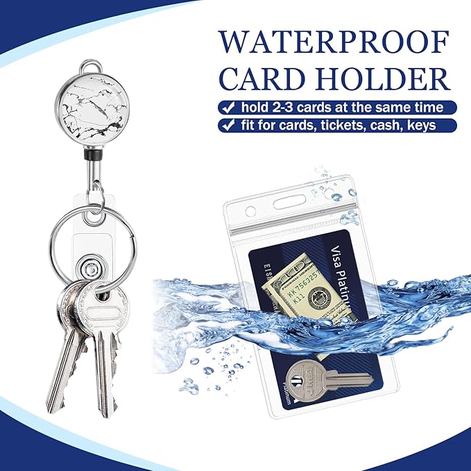 - Novelty Design: This necklace ID badge lanyard and retractable badge reel features a striking design inspired by the unique patterns of black and white marble. The elegant and timeless aesthetic of the marble pattern adds a touch of sophistication to the lanyard, making it a stylish and functional accessory for carrying ID badges. Package Included: ID lanyard retractable reel x2, thickened waterproof ID holders x2