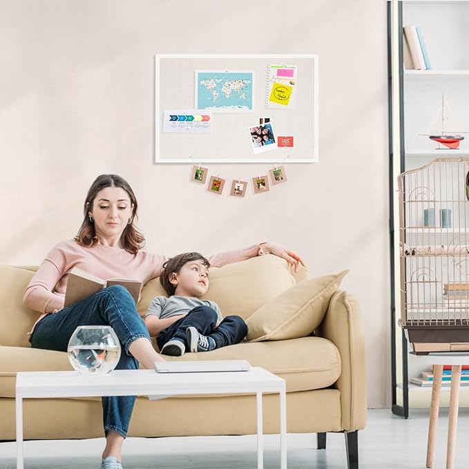 - 【Reliable Material】Bulletin Board is made of linen material with high density. Pins can be fixed in place. The perfect combination of white frame and linen is ideal for planning schedules, inspiration.