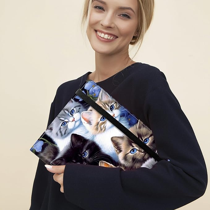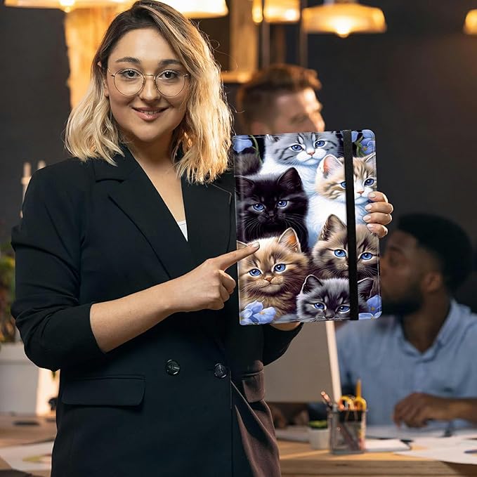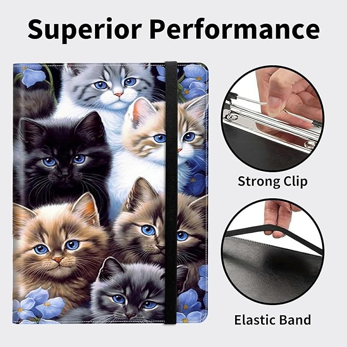 Padfolio Folder with Clipboard,Portfolios Organizer Clipboards with Storage Clipboard Writing Pad PU Leather Conference Document Organizer with Business Card Holder,Cute Cat