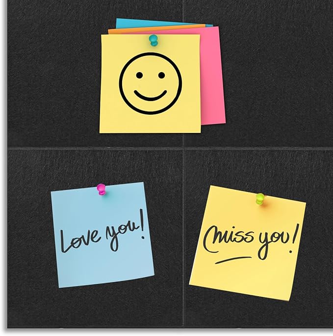 Bulletin Board 48 x 36, Black Cork Board Alternative for Office, 12 Count Felt Wall Tiles with Removable Adhesive Tabs, Square Pin Board Tack Board with 30 Pushpins(Black)