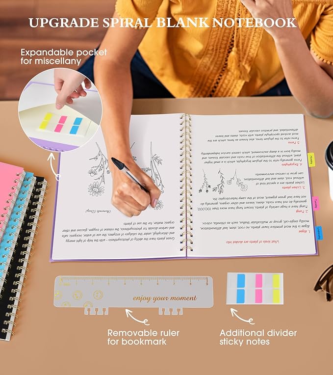 - 【A4 Blank Spiral Journal Notebook】 Large a4 size 8.5"x11" blank notebook, standard 7mm space classic sketch book journals. The professional sturdy water-resistant plastic hard cover will protect your notebooks to last for years, which has oil-resistant and anti-bending properties, effectively protecting the internal paper of the journal and provides a comfortable writing surface.