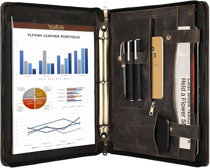 - Leather binder portfolio organizer is a great and practical gift for people working in an office, students, graduates, lawyers, entrepreneurs and anyone who is considering starting a business. Make the portfolio binder personal with initials/name/logo engraving. It's a luxurious personalized portfolio that's perfect for birthdays, graduations, anniversaries, business gifts, Christmas, and New Year's. Just select the "CUSTOM" option and let's create a unique portfolio binder together.