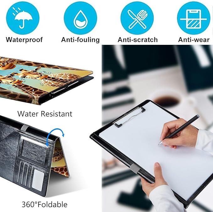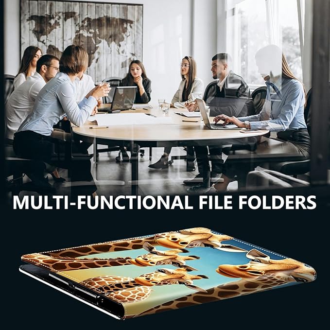 PU Leather Padfolio Folder Clipboard Portfolios Organizer Conference Document Organizer with Business Card Holder Storage Clipboard Writing Pad,Giraffe
