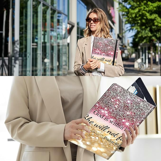 PU Leather Padfolio Folder Clipboard Portfolios Organizer Conference Document Organizer with Business Card Holder Storage Clipboard Writing Pad,Christian Bible Psalm 46-5