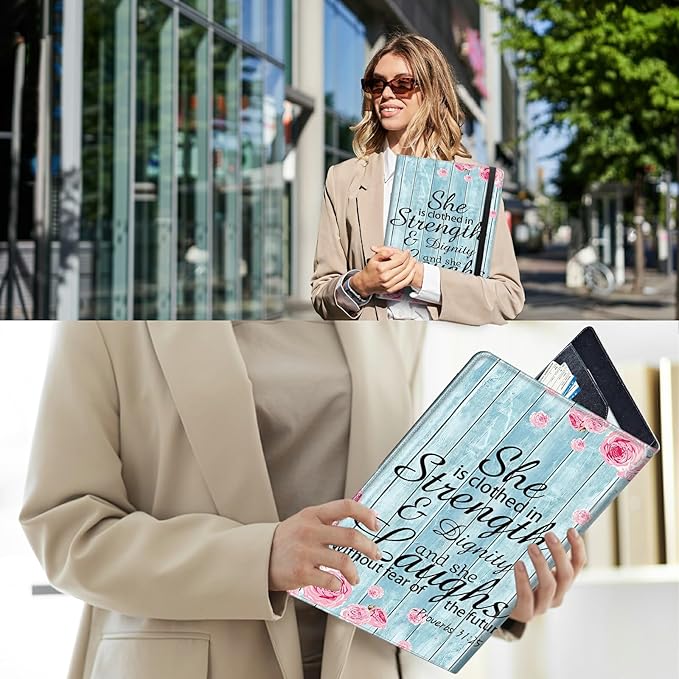 PU Leather Padfolio Clipboard Notepad with Pen Loop and Elastic Strap Interview/Resume Document Organizer for Business School Office,Bible Quote Proverbs 31-25