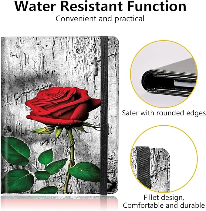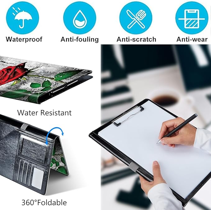 PU Leather Padfolio Folder Clipboard Portfolios Organizer Conference Document Organizer with Business Card Holder Storage Clipboard Writing Pad,Elegant Red Rose