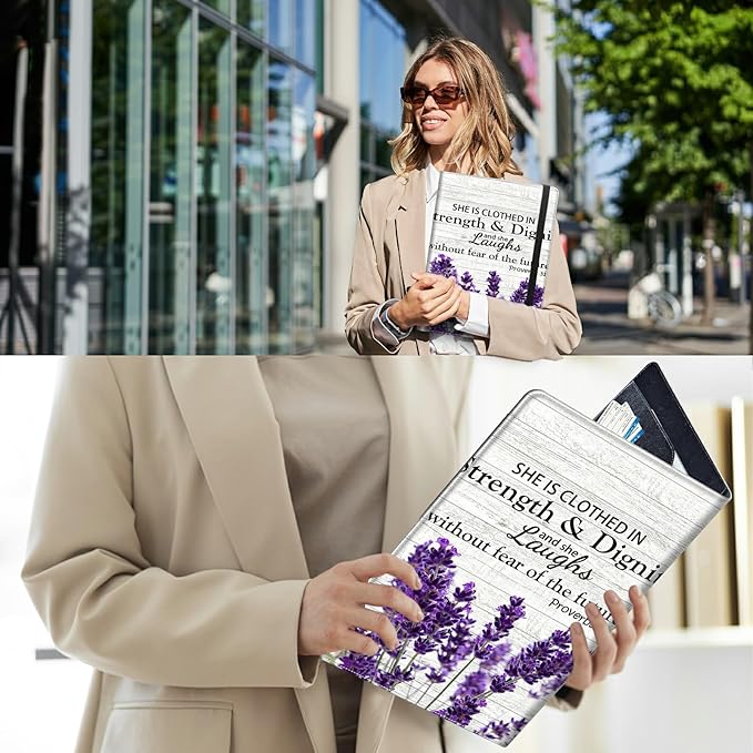 PU Leather Padfolio Clipboard Notepad with Pen Loop and Elastic Strap Interview/Resume Document Organizer for Business School Office,Purple Lavender