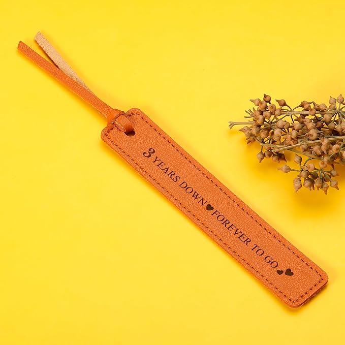 - 3rd anniversary Bookmark---Engraved with “3 years down forever to go”. Use this 3th anniversary bookmark to send your best wishes. Sweet anniversary gift for boyfriend and girlfriend, dedicated to the eternal love of the couple.Keep the memory of we are together for six years.These leather bookmarks made of leather are full of vintage and retro flavor, showing age and grace.