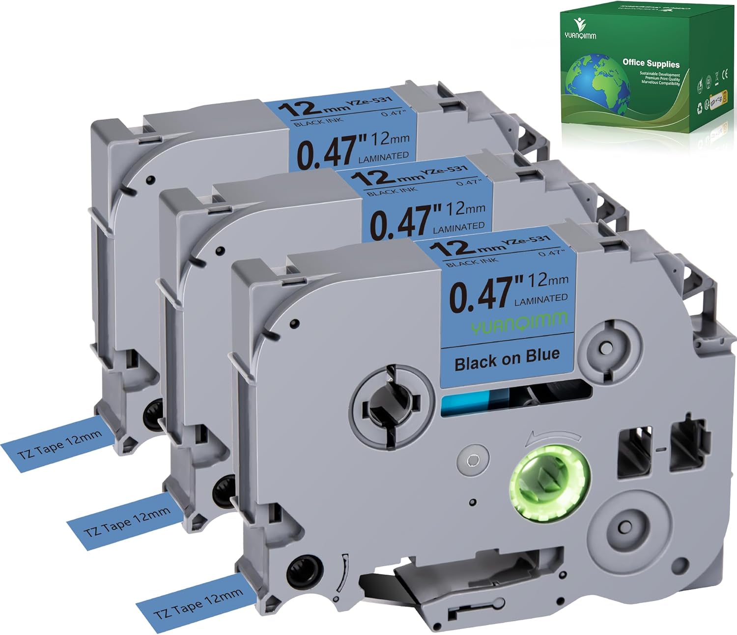 - Package included: 3-Pack Compatible with Brother PTouch TZe-531 TZ-531 TZe531 TZ531 12mm 0.47 Inch Black on Blue Label Maker tape