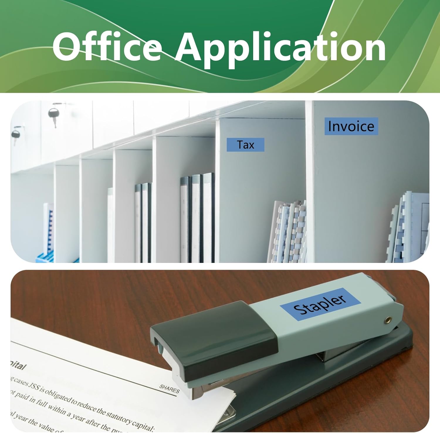 - Applications: TZe531 is suitable for home, school, office, warehouse, etc. It can be used to label files, folders, plug sockets, books, spice jars and more