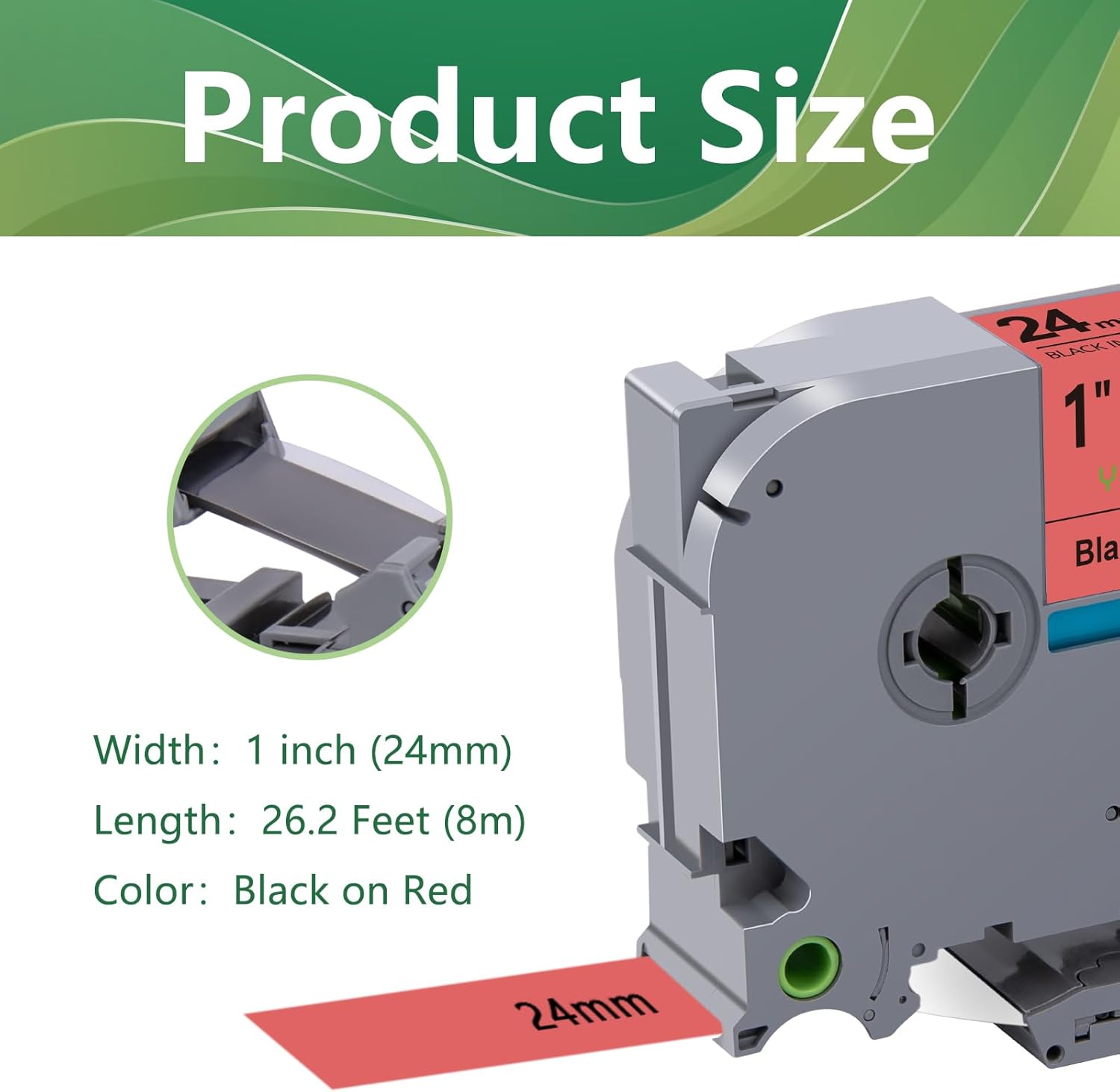 - Product Size: Width: 24mm 1 inch, Length: 26.2 feet (8m) for each 24mm 1 inch laminated red label tape