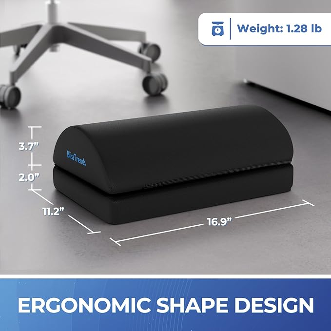 - 【Comfortable Experience】The BlissTrends foot rest has two layers: the lower layer measures 16.9"*11.2"*2.0", and the upper layer is 3.7" thick. The foot stool is ergonomically designed with sufficient height and curvature to better relieve the pressure on your limbs and discomfort when sitting for long periods of time.