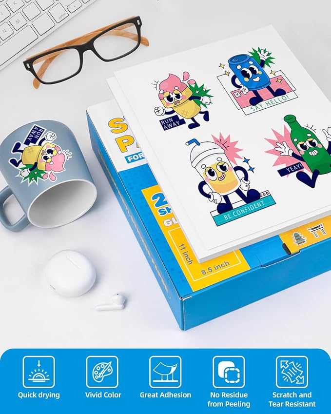 - 【For inkjet printers】 Suitable for most inkjet printers such as Epson, HP, Brother, Canon, etc. And intend for Cricut/Silhouette Cameo, etc. Easily transfer to smooth object surfaces. Can be easily cut with scissors to exercise kids and our hands-on skills. Creatively used in all aspects of life, stick on top of our notebooks, mugs, coffee cups, helmets, cell phone cases, cars, bikes, glass, packaging, luggage.
