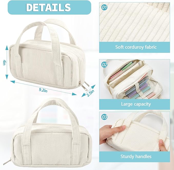 - Large Capability: white pencil pouch with hand carry measures about 9.2 x 4 x 2.5 inches, with sufficient space for you to store various stationery, like pens, marker pens, rulers, eraser, pencils and more; Cute pencil bag can be folded, compact and convenient to store and carry around