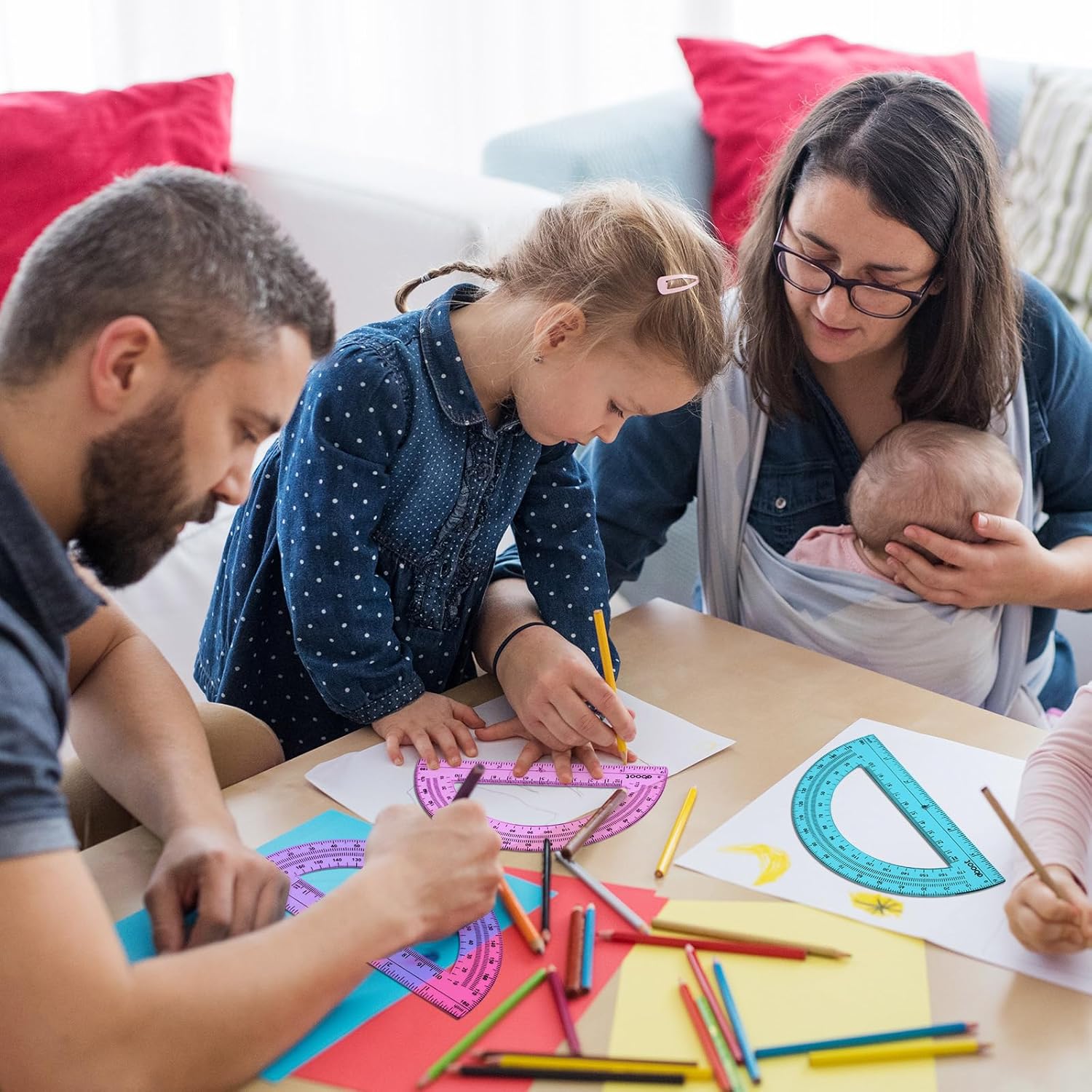 EBOOT 24 Pack Plastic Protractors Math Protractor 180 Degrees 6 Inch (Pink, Blue)