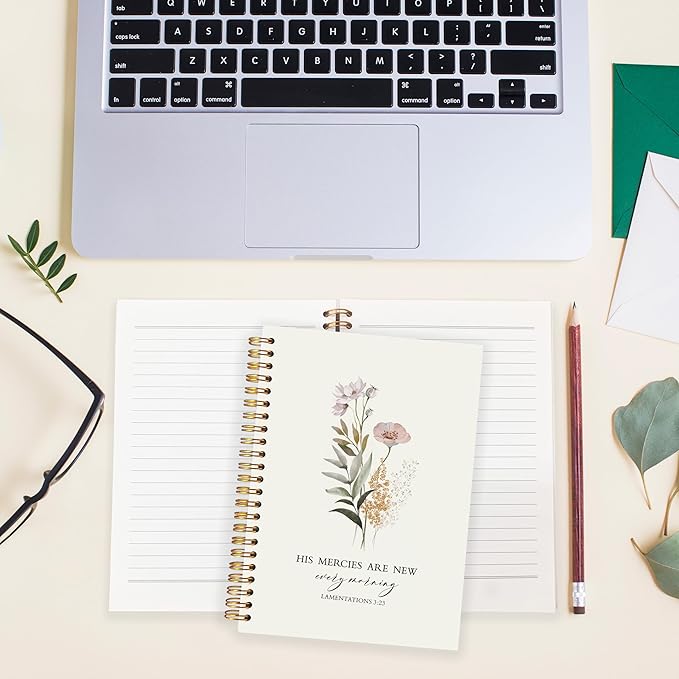BearCake small Christian Notebook,Christian Notebook for Women,Christian floral Notebooks,morning journal,His Mercies are New Every Morning,Bible journaling Notebook 5.5x8.3