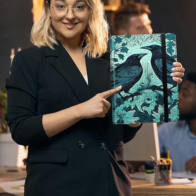Ravens On Branches PU Leather Padfolio Clipboard Notepad with Pen Loop and Elastic Strap Interview/Resume Document Organizer for Business School Office