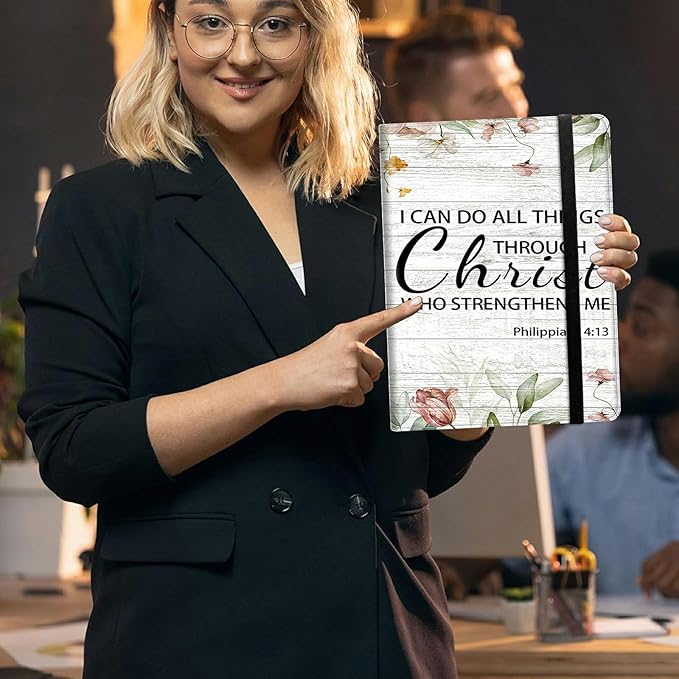 Bible Philippians 4:13 PU Leather Padfolio Clipboard Notepad with Pen Loop and Elastic Strap Interview/Resume Document Organizer for Business School Office