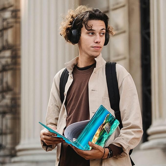 Sea Turtle PU Leather Padfolio Clipboard Notepad with Pen Loop and Elastic Strap Interview/Resume Document Organizer for Business School Office