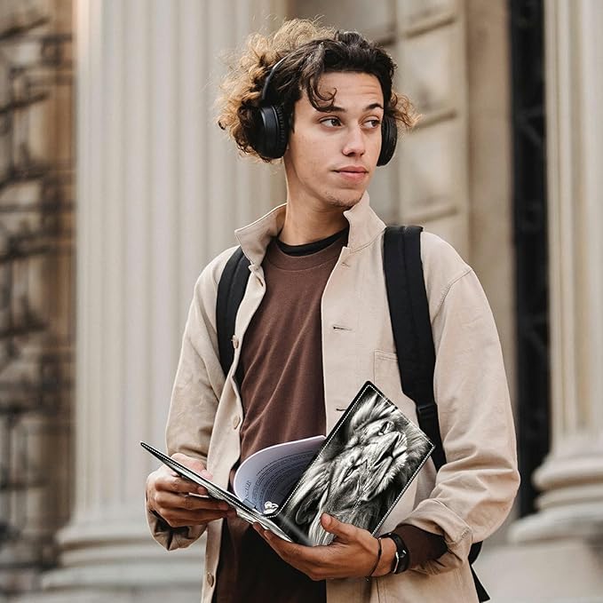 Lion PU Leather Padfolio Clipboard Notepad with Pen Loop and Elastic Strap Interview/Resume Document Organizer for Business School Office