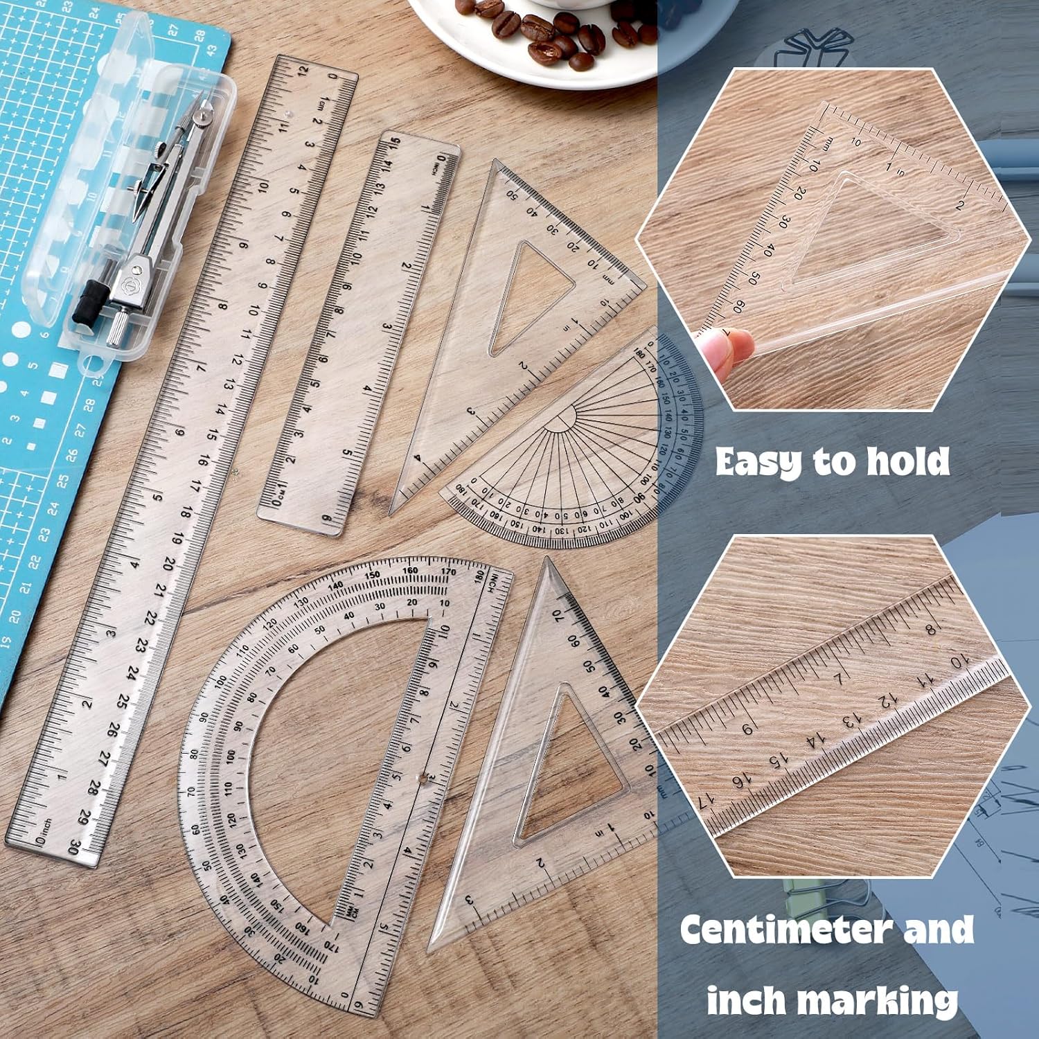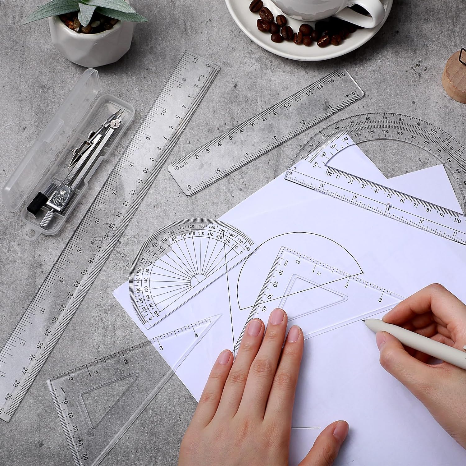 - Versatile and Essential Tools: this compass and protractor are practical tools for drawing circles and measuring angles, respectively, making them a must have for teachers, engineers, designers, artists, among others; This clear plastic ruler set proves to be an indispensable addition to your ruler bulk collection
