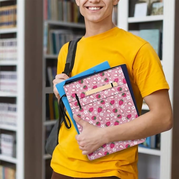 COEQINE Strawberry Book Sleeve Protector Book Cover with Zipper Book Sleeves Washable Hardcover Paperbacks Book Sox with Front Pocket