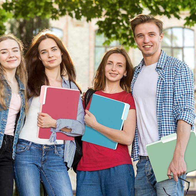 SUNEE File Folders Letter Size Retro Colors, 100 Pack Folders for Documents 1/3-Cut Tabs, Colored File Folders Office Home School for Documents Files Paper
