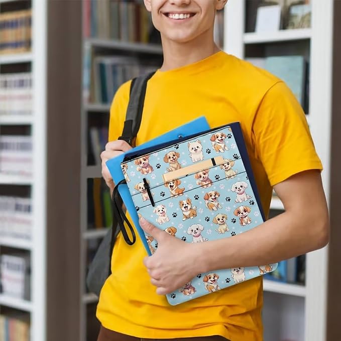 COEQINE Cute Dogs Book Covers For Soft Cover Books Teens Girls Blue Kawaii Dogs Paperbacj Large 9x11 Front Pocket for Phone Pencil Portable