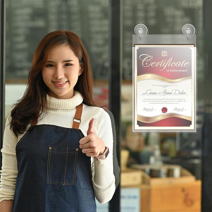 Suzile 12 Pcs Acrylic Window Sign Holder Hanging Acrylic Sign Holder 8.5 x 11 Inch Office Door Signs with Suction Cup Hooks Suction Cup Hangers for Office School Home Store Restaurant