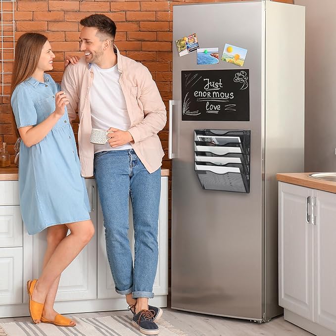 - 5 Pockets: The magnetic wall file organizer comes with mounting screws that can be easily mounted on the wall