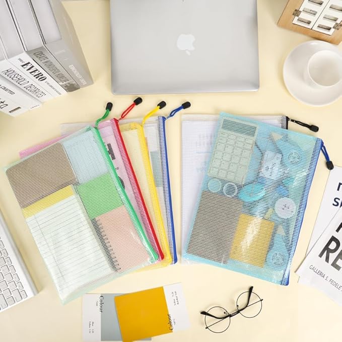 EOOUT 36pcs Mesh Zipper Pouch for Organizing, A4 Letter Size Zipper Storage Bags, Multicolor Plastic File Pouch Multipurpose for Classroom Organization Travel Storage Board Game Storage