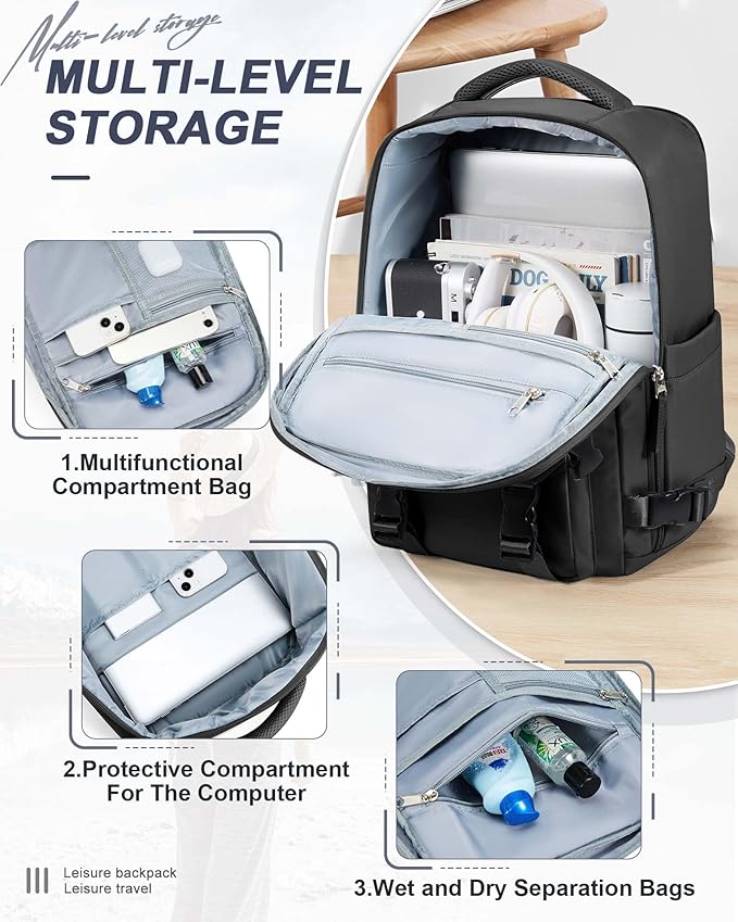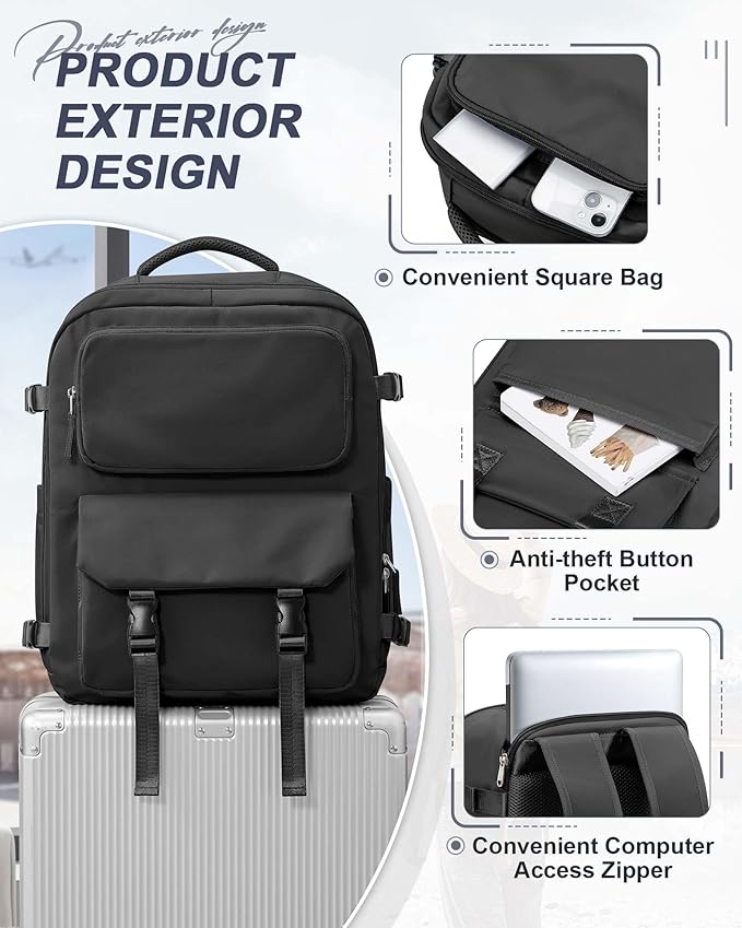 - ✈【Large Flight-approved Travel Backpack】Large backpack size: (W x L x H) 45 cm x 36 cm x 20 cm / 17.7 x 14.2 x 7.9 inches. Weight: 2.9Lb/1.3Kg. Fits most airline regulations.180 degree zipper closure helps you pass through the security check quickly. Easy to put in luggage rack or under seats. Our backpack is not only perfect for travel, but also for everyday use. The trolley sleeve allows you to conveniently slide it over the handle of your luggage for easy transport.