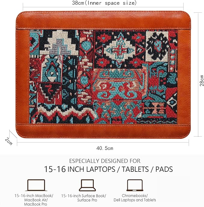 - [Material]-The Laptop Case Made of Jacquard cloth and leather, soft plush lining - anti-static, can effectively absorb shock, reduce damage caused by accidental collisions, and protect the notebook from scratches.